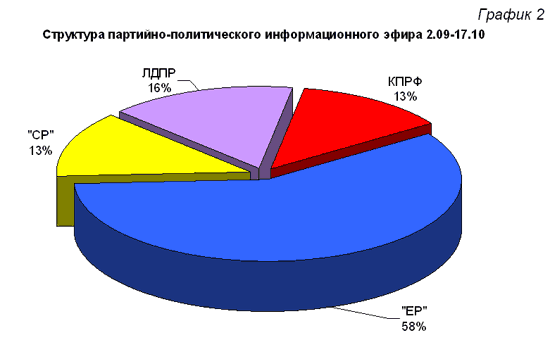 «Единая Россия». Режим наибольшего благоприятствования «ЕР» получила на «Третьем» канале. Здесь эта партия имела 100% всего информационно-политического телеэфира.