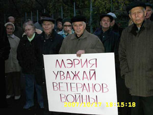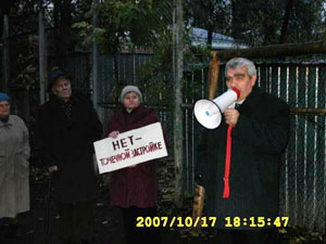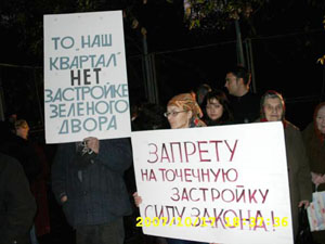 Кстати, представители местной исполнительной власти выступать на митинге отказались, за них отдувался представитель инвестора. В ответ он получил жесткие и справедливые упреки от ветеранов, сравнивших действия застройщиков с набегами фашистских полчищ, от которых старики спасали страну в тяжелые годы Великой Отечественной войны. Говорилось, что политическая партия “Единая Россия” сильна выпуском листовок с неким абстрактным планом поБеды гаранта ее безопасности над нищей страной в преддверии грядущих выборов, реально являясь идеологическим и физическим проводником всех проектов, ущемляющих права граждан. И новый виток краха экономики в октябре 2007 года, скачок цен на продукты питания, градостроительный произвол – это только “точки” в грядущих последствиях проводимой единороссами политики. Резолюция прошедшей акции протеста будет отправлена КЗПГ в разные инстанции властей.