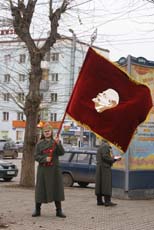 Двухчасовое торжество сопровождалось театрализованным представлением, которое устроили участники акции. Веселый Василий Иванович Чапаев и красавица-пулеметчица Анка раздавали прохожим листовки, сообщающие о нынешнем положении России, напоминающие, что в нашем государстве должно править народовластие, а сама страна должна быть независимой и сильной. Рядом с Чапаем и Анкой гордо маршировал отряд знаменосцев – красных молодцев в буденовках. Люди радостно приветствовали героев праздника.
