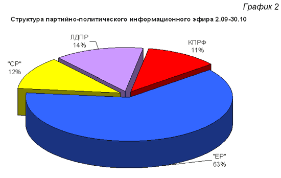Суммарная доля телеэфира с начала избирательной кампании (2 сентября – 30 октября) выглядит следующим образом (График 2):