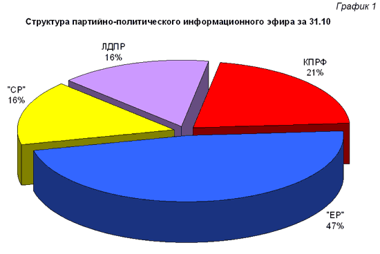 31 октября. Шестидесятый день выборной кампании на ТВ: Из 22 мин 36 сек. партийного телеэфира 47% досталось "ЕР", 21% - КПРФ и по 16% - "СР" и ЛДПР