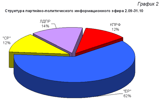 Суммарная доля телеэфира с начала избирательной кампании (2 сентября – 31 октября) выглядит следующим образом (График 2):