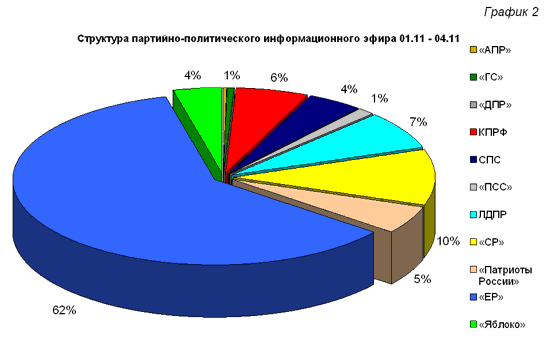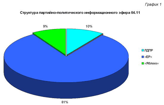 Из них 81% был отведён «Единой России», 10% - ЛДПР, 9% - «Яблоку». Компартию проигнорировали все федеральные телеканалы.