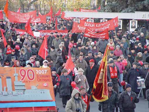 7 ноября в городах Саратове, Энгельсе, Балашове, Балакове, Пугачеве, Вольске, Ершове состоялись демонстрации и митинги трудящихся, посвященные 90-й годовщине Великой Октябрьской Социалистической революции, организованные городскими и районными комитетами КПРФ. Во всех остальных райцентрах - митинги, пикеты, возложение цветов к памятникам борцам революции, В.И. Ленину. В мероприятиях приняли участие ветеранские организации, союз советских офицеров, СКМ РФ, женская общественная организация "Надежда России". Всего в торжественных собраниях, демонстрациях и митингах приняло участие около 18 тыс. человек, в т.ч. в г. Саратове около 3,5 тыс. человек.