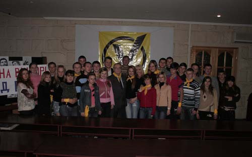 Встреча началась с традиционного "прорывовского" приветствия "Че Геваре - слава! Героям - слава! Приднестровью - слава! России - слава!", после чего гостя представил активистам идеолог ММК-НДП "ПРОРЫВ!" Дмитрий Соин.