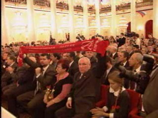 КОР: Но 90 лет спустя все случилось наоборот. В столице все прошло мирно, а в провинции - в Иркутске чуть было не пролилась кровь. Во время праздничной демонстрации кто-то достал черный флаг с символикой национал-большевиков и тут же рядом появились люди в штатском. В борьбе за чистоту предвыборного правопорядка не щадили ни женщин, ни стариков.