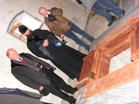 Затем от имени братии монастыря Г.А.Зюганову иеромонахом Спиридоном, исполняющим обязанности наместника был преподнесен аналойный список со святыни - Курской Коренной иконы Божией Матери "Знамение".