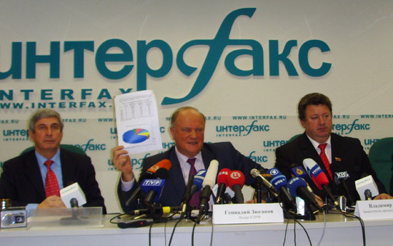 28 ноября в информационном агентстве "Интерфакс" состоялась пресс-конференция руководителей коммунистической партии. В ней приняли участие Председатель ЦК КПРФ Г.А. Зюганов, первый заместитель Председателя ЦК КПРФ И.И. Мельников и заместитель Председателя ЦК КПРФ В.И. Кашин.