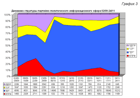 Представляет интерес и динамика структуры эфира за весь период избирательной кампании (График 3):