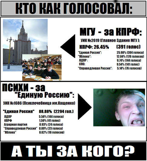 Выборы 2007: Кто как голосовал. МГУ - за КПРФ, "Кащенко" за "Единую Россию"