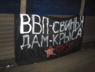 В Новогоднюю ночь заполнившие Невский горожане среди массы празднично-поздравительных растяжек с особым интересом рассматривали информационный баннер (на снимке), сообщающий о том, что «ВВП – СВИНЬЯ, а ДАМ - КРЫСА».