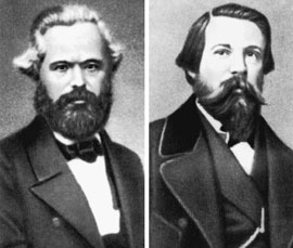 Это было сказано в 1847 году, правда, начало фразы было написано Энгельсом по поводу соотношения бытия и сознания: "...Не сознание людей определяет их бытиё, а, наоборот, их общественное бытиё определяет их сознание".