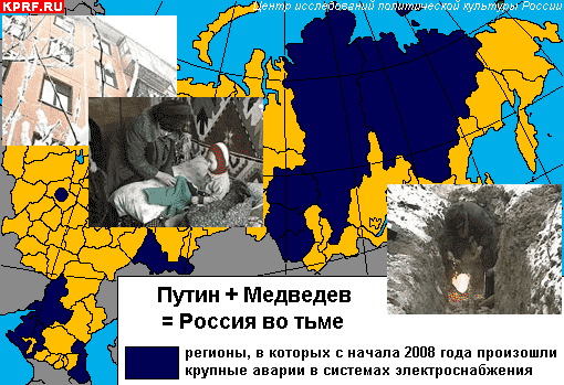 В общем, руководимый кандидатом в президенты и первым вице-премьером правительства Д.Медведевым социальный блок начал новый предвыборный год катастрофически. Крупные аварии систем жизнеобеспечения в одиннадцати субъектах Российской Федерации, где без тепла и света оказалось около ста тысяч жителей, стали еще одним свидетельством развала бесконечно реформируемой системы ЖКХ. Причём все больше аварий в системах энергоснабжения. Накануне прекращения существования единой энергосистемы России – Чубайс уже готов в средине года к ликвидации РАО ЕЭС России – нарастающий вал аварий может быть только одиним из признаков грядущей энергокатастрофы в стране.