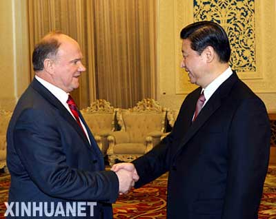 Г.Зюганов еще раз поздравил с успешным проведением 17-го съезда КПК и выразил удовлетворение успешной реализацией соглашения о межпартийном сотрудничестве. По его словам, КПРФ уделяет большое внимание межпартийным и межгосударственным отношениям дружбы и сотрудничества и уверена в перспективах развития российско-китайского стратегического партнера и взаимодействия. Он вместе с тем выразил готовность КПРФ прилагать максимум усилий по продвижению и углублению дружественного обмена и взаимовыгодного сотрудничества по всем направлениям.