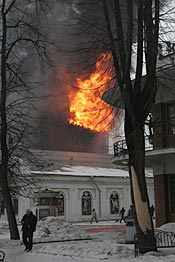 Он напомнил, что здание, в котором начался пожар, "старой застройки" с деревянными перекрытиями.