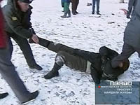Чуть позже была задержана еще одна жительница – пожилую женщину волокли в автобус прямо по земле. Задержанные были доставлены в ОВД № 54.