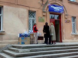 Голосование по выбору символа Олимпиады-2014 на входе в избирательный участок 43-12.