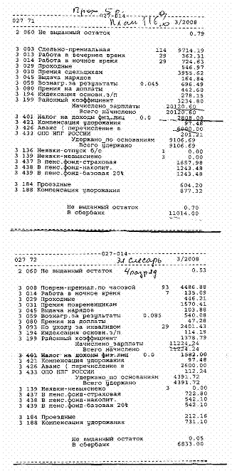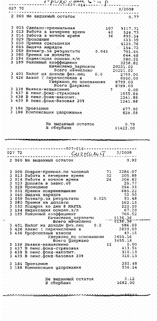 Кроме того, сотрудники предприятия опровергают заявления администрации СУБРа, согласно которым средняя заработная плата на предприятии превышает 18 тысяч рублей, а у проходчиков 30 тысяч рублей. Они передали депутатам расчетные листки по заработной плате, которые сами шахтеры называют «лапшой». Из этих листов видно то, что проходчик 5 разряда получает на руки зарплату порядка 17 000 рублей, электрослесарь 4 разряда – чуть более 9 000 рублей, сигналист – около 4 400 рублей. При этом все работники, в том числе и женщины, работают в шахте на глубине от 500 и более метров.