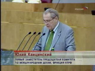 Выступивший от имени фракции коммунистов депутат Юлий Квицинский в очередной раз призвал правительство проявить решительность в сложившейся международной обстановке. ЮЛИЙ КВИЦИНСКИЙ (первый зам. председателя комитета по международным делам, фракция КПРФ): Конечно, при немедленном признании Абхазии и Южной Осетии есть некоторый риск, но он невелик. Не успев как следует заглотить Косово, США и их союзники уже взяли под прицел Грузию и Украину. Лучший способ - понизить интерес США и НАТО к Грузии - это лишить ее возможности вернуться на абхазское побережье и продвинуться на север Кавказа.