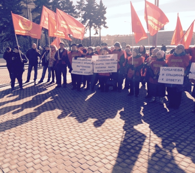 17 марта, в день 25-летия референдума 1991-го года о сохранении Союза Советских Социалистических Республик, на котором ЗА проголосовало более 77% избирателей, организация Коммунисты Петербурга и Ленобласти и КОМПАРТИЯ КОММУНИСТЫ РОССИИ провели митинг в поддержку этого решения советских людей. Коммунисты вспомнили, как жилось трудящимся в Советском Союзе, потребовали наказать виновников развала СССР, обсудили пути восстановления Советского Союза и социализма. Коммунисты в торжественной обстановке выдали всем собравшимся cимволические СОВЕТСКИЕ ВКЛАДЫШИ в паспорта, чтобы каждый желающий мог осознать себя советским человеком.
