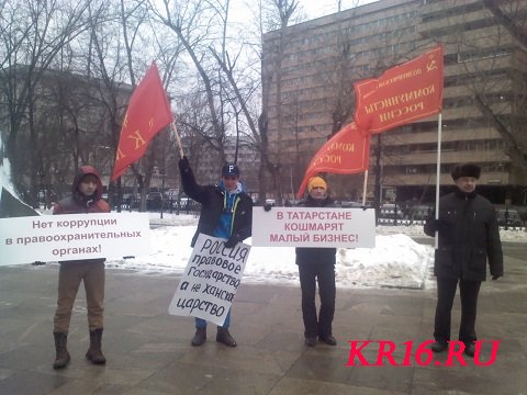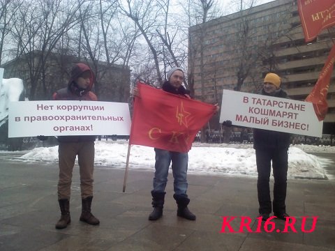 Татарстанские комсомольцы-коммунисты поддержали протестное мероприятие в г.Москве. Представители партии «КОММУНИСТЫ РОССИИ» и СКМ из Казани и Зеленодольска специально выехали для этого в Москву, чтобы поддержать требование трудящихся, работающих на оптово-продовольственном рынке. Из-за незаконного захвата властями рынка 500 семей остались без средств к существованию. 8 февраля 2014г. трудящие устроили голодовку на рынке Привоз, где после 6-ти дней голодовки есть пострадавшие, двоих увезли в больницу. Поэтому в Москве 13 февраля у памятника Льву Толстому предприниматели оптовой базы "Привоз" провели пикет совместно с левыми силами против незаконного закрытия "Привоза"!