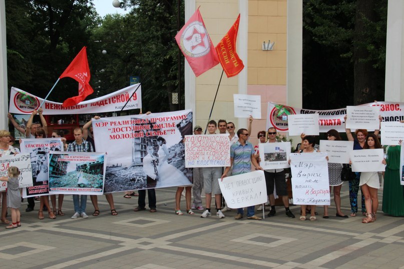 На пикете была единогласно принята резолюция, в которой возмущённые граждане озвучили требования к администрации кубанской столицы и к краевым властям:1) Предоставление официальных гарантий властей, о справедливом решении проблемы жильцов Кадетской 9. 2) Обеспечение адекватной жилой площадью пострадавших с "Кадетской 9". 3) Наведение порядка в вопросах органов муниципального контроля и органов исполнительной власти. 4) Упрощение процедуры регистрации возводимого жилья (при условии соблюдения всех норм и правил). 5) Снятие административных барьеров, приводящих к коррупции сфере строительства. 6) ПРЕКРАЩЕНИЕ СНОСА ДОМОВ!!! Это дополнительно поломанные судьбы семей, где растут или где должны родиться дети! 7) Прекращение массовых нарушений прав человека на территории края, провозглашенных Конституцией РФ и Европейской конвенцией по правам человека, ратифицированной нашей страной в 1998г. 8) Прекращение уголовного преследования, с политической подоплекой, секретаря партии КОММУНИСТЫ РОССИИ Михаила Абрамяна и активистки партии РОТ-Фронт Дарьи Полюдовой Объединённая левая оппозиция полностью поддержала требования жильцов "Кадетской 9" и намерена всецело помогать им в восстановлении их законных прав.