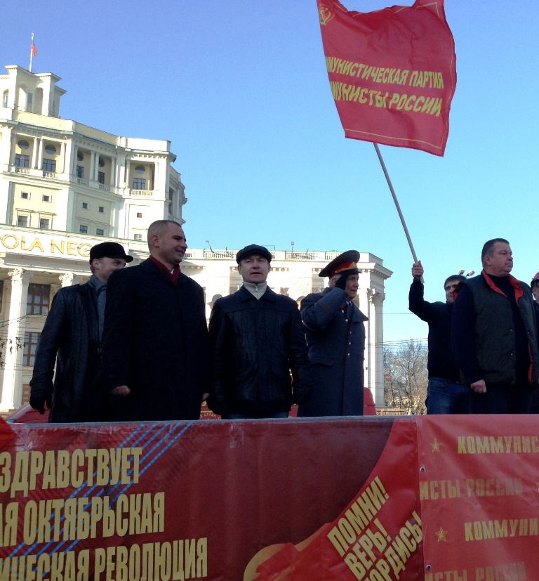 Массовая демонстрация и митинг КОМПАРТИИ КОММУНИСТЫ РОССИИ состоялись в Москве. Более тысячи человек прошли пролетарским революционным маршем от Самотечной улицы до Суворовской площади. Во главе колонны шел Товарищ Максим, Заместитель Председателя ЦК КР и Первый секретарь МГК Я.С.Сидоров , другие лидеры партии. Высокой была явка московских коммунистов на мероприятие. Колонны районных и окружных комитетов возглавили тт. Сабельников,Фролов, Рогожин, Зиновьева, Веселов, Донченко, Тарасенко, Дондо, Цыбина и многие другие товарищи. Звучали боевые революционные и советские песни, демонстранты скандировали призывы и лозунги, сформулированные ЦК к этому дню. " Работу! Зарплату! Бесплатное образование"! "Нет- медицинской реформе! Нет- коррупции в высших сферах власти! Руки прочь от Советской истории"! "Слава Великому Октябрю! Слава великому Ленину"! " Долой американский империализм"! "Требуем вернуть государственный праздник День Великой Октябрьской Социалистической Революции"!