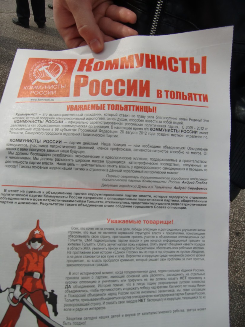 ПЕРВОМАЙСКИЕ АКЦИИ КР В ТОЛЬЯТТИ