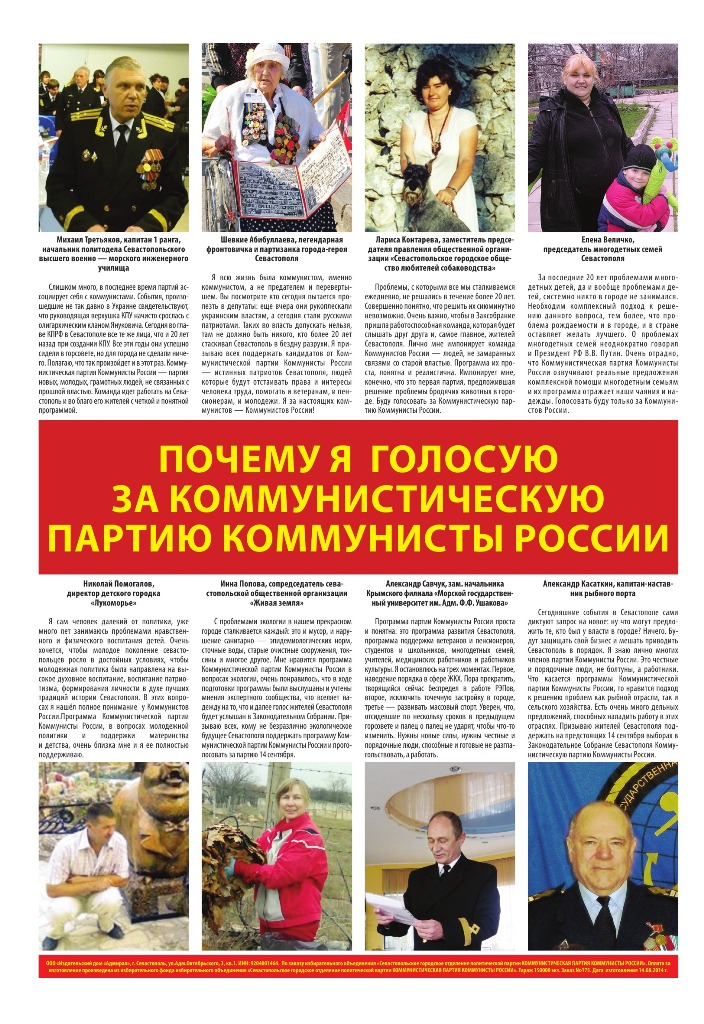 ПРЕДВЫБОРНАЯ ГАЗЕТА СЕВАСТОПОЛЬСКОГО ОТДЕЛЕНИЯ КОМПАРТИИ КОММУНИСТЫ РОССИИ