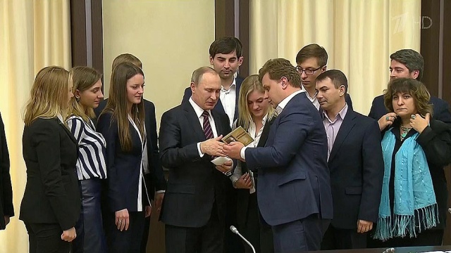 Президент России В.В.Путин принял в своей резиденции в Ново-Огарево лидеров патриотических молодежных организаций, готовящих со стороны РФ проведение 19-го Всемирного Фестиваля Молодежи и Студентов в России под эгидой ВФДМ ( Всемирной Федерации Демократической Молодежи)