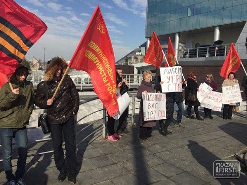 Активисты КОМПАРТИИ КОММУНИСТЫ РОССИИ проводят пикет против приезда в столицу Татарстана лидера ПАРНАСа Михаила Касьянова.