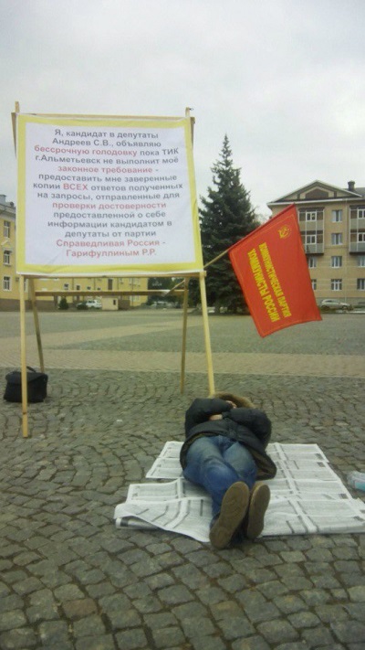 15.10.2015 года Андреев С.В. начал бессрочную голодовку на площади Ленина г. Альметьевска, рядом со данием Администрации города, в котором находится ТИК г. Альметьевска, пока ему не будут выданы требуемые им заверенные копии ответов на запросы по Гарифуллину Р.Р.