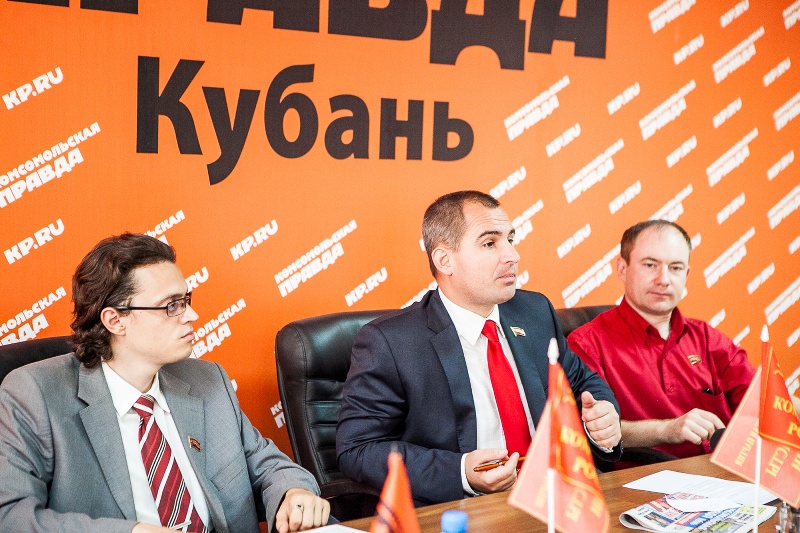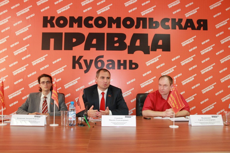 Состоялся очень насыщенный разговор с журналистами края. Товарищ Максим рассказал о трудном пути партии, о победах, которые дались нелегко. Предложения КР по социализации пенсионного обеспечения, борьба за власть, как форма существования новой компартии, различия между ленинской КОМПАРТИЕЙ КОММУНИСТЫ РОССИИ и уходящей в прошлое зюгановской КПРФ , непростой диалог с руководством страны - таковы были темы, которые затронул Председатель ЦК Максим Сурайкин. О верности сталинскому наследию, о росте информационного влияния партии, о солидарности с борющимися патриотами юго-востока Украины , о новой роли Краснодарского края в защите итогов воссоединения Крыма с Россией говорил Секретарь ЦК КР Сергей Малинкович. О хороших электоральных перспективах КР в Краснодарском крае ( в регионе партия освобождена от сбора подписей избирателей) , о повседневной работе партии, об инициативе КОМПАРТИИ КОММУНИСТЫ РОССИИ по установке памятника Н.И.Кондратенко, о протестной деятельности крайкома рассказал секретарь краевого комитета Дмитрий Печинский. Также он подверг резкой критике местных зюгановцев, предавших ценности и традиции земли кубанской.
