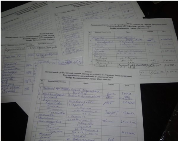 Саратовское областное отделение и Совет коммунистов, в который входят представители политических партий Ротфронт, Трудовая Россия, общественная организация Союз Советских офицеров продолжают сбор подписей саратовцев по вопросу увековечивания памяти Иосифа Сталина на Саратовской земле.