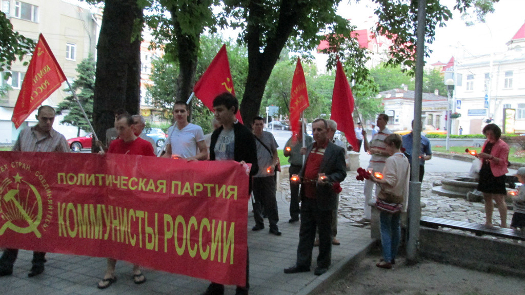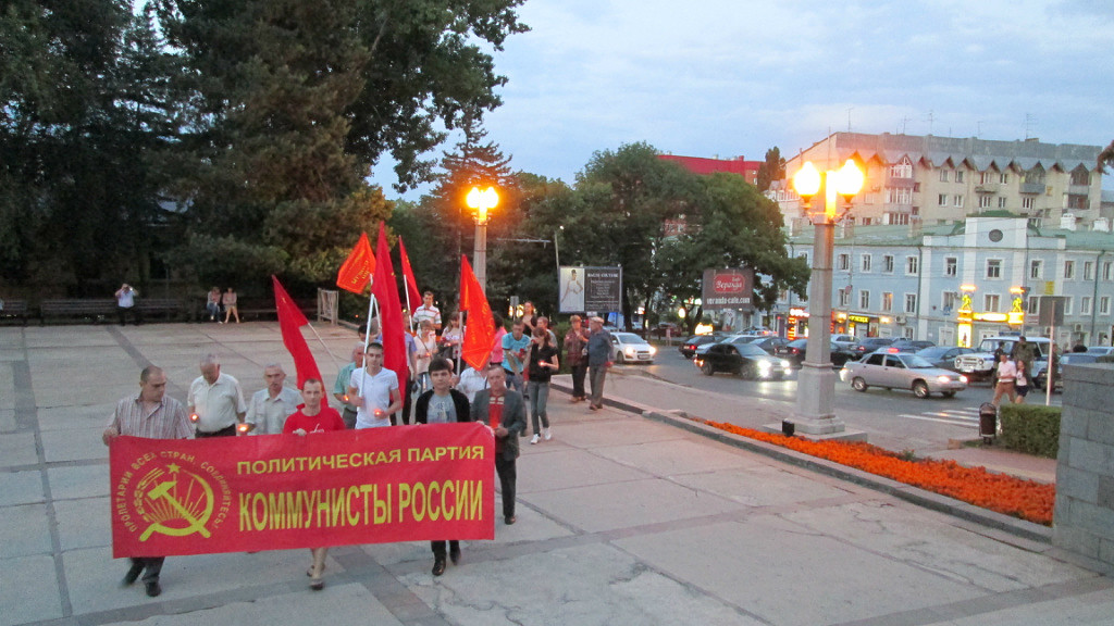 Вечером 21 июня 2013 года перед днем Памяти и скорби Ставропольским краевым отделением Политической партии «КОММУНИСТЫ РОССИИ» проведено массовое мероприятие Свеча памяти. Участники с цветами и флагами собрались в Ставрополе на бульваре по проспекту Карла Маркса у фонтана «Мальчик и девочка с кувшином». Здесь же были зажжены свечи памяти и началось шествие к Вечному огню памятника Трем поколениям защитников Родины. Все участники мероприятия несли горящие свечи, символизирующие сердца тех, кто погиб защищая Родину, или пал жертвой палачей в годы Великой Отечественной войны. Нарядом из работников полиции и поста № 1 была перекрыта проезжая часть для беспрепятственного прохождения к подножию Комсомольской горки, ныне Крепостной горы. У памятника при склоненных флагах Советского Союза и партии КОММУНИСТЫ РОССИИ были установлены свечи и возложены цветы на гранитные плиты мемориала у Вечного огня. Участники мероприятия почтили молчанием погибших. После с краткими напоминаниями о начале Великой Отечественной войны выступили Первый секретарь Комитета Александр Кравченко и представитель ВКП (б) Николай Ананьев. В мероприятии приняли участие как ветераны - Нелли Ивановна Трутнева, Галина Ивановна Петрова, Валерий Артавазович Акопян, так и молодежь - рабочие Александр Назаров, Сергей Кузьмин, Константин Попков, Роман Нещадимов, Леонид Брыков, биохимик Наталья Хлипавка. Организационную помощь в проведении мероприятия оказал член КПРФ Валерий Бычков, администратор группы Коммунисты мира в сети Одноклассники.