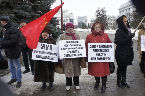 7 марта около 30-ти обманутых дольщиков из Набережных Челнов специально прибыли в Казань из столицы Автограда для проведения протестной акции возле стен Кабмина, к ним присоединились так же обманутые дольщики из Казани, а так же общественно-политическая сила Татарстана – политическая партия «КОММУНИСТЫ РОССИИ» и общественная организация СКМ.