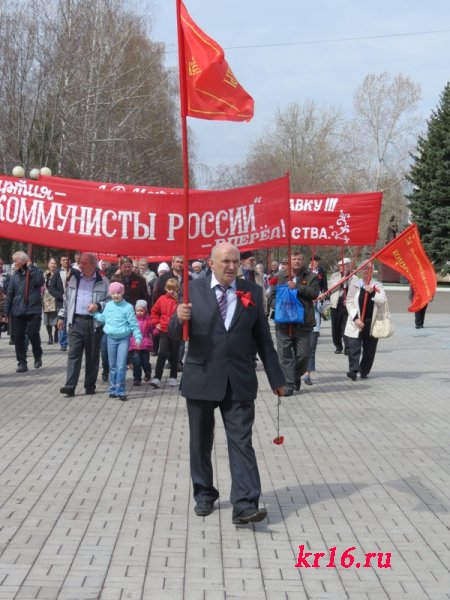 Секретарь по идеологии экс-депутат Госсовета Роберт Садыков: «На прошлом митинге, несколько дней назад мы говорили о том, что на первое место выходят три проблемы: проблема безудержного роста цен, проблема инфляции - раз, проблема ЖКХ – два, проблема коррупции – три. Есть ещё важные проблемы: здравоохранения, образования, науки, беспределы чиновников и т.д. На сегодняшний день актуальны инфляции и проблемы ЖКХ. Если хочешь ограбить чужой народ – его надо завоевать силой, военной силой. А если хочешь грабить свой народ, как говорили классики марксизма-ленинизма, то самый лёгкий способ это инфляция. Вот власти наши этим делом и занимаются, приватизация это тоже грабёж был. Во времена классиков марксизма-ленинизма приватизации не было, тогда ещё не грабили социалистическое народное хозяйство, тогда его просто не было. Вот говорят 6,5% годовая инфляция. Вы этому верите? Недавно с хорошей должности ушёл директор государственного института статистики. Наверное этот человек лучше всех знает эту проблему, он ушёл и сказал: «Не могу обманывать свой народ. Реальный уровень инфляции в России в последние годы составляет минимум 15-18%, то есть в 3 раза больше тех данных, которые публикуют власти. Но есть большая разница, как сказали бы в Одессе. Есть инфляция и есть инфляция. То есть, это разные вещи – инфляция для олигархов, которые покупают на миллиарды долларов яхты, виллы, иностранные футбольные, баскетбольные клубы. Для них инфляция одна, а для народа который покупает в основном хлеб, молоко, овощи, яйца; оплачивает коммунальные платежи она другая. Это народная инфляция, согласно данным АиФ она составляет 32,5% для простого народа. Такими темпами наши зарплаты не растут, а значит постепенно ухудшаются условия жизни основной массы населения. Пока об этом говорят в основном на кухне, таким способом мы эту проблему не решим. Здесь нужна солидарность всех категорий населения и международная солидарность. Поэтому наш праздник называется праздник международной солидарности трудящихся. Надо остановить инфляцию, пусть она будет 1-2%, как в развитых странах, но не 10,20 или 30%. В советское время бесплатно получали жильё. У меня было пятеро братьев и сестёр. У жены было шестеро братьев и сестёр. Все получили от государства бесплатные квартиры. Мы сейчас не требуем от этого государства бесплатного жилья, это дело бесполезное. Но что делать молодым семьям? Это только восстановление советской власти. Чем можно сейчас помочь молодым семьям? Как снизить плату за жильё в 3-4 раза? Надо создавать государственные корпорации, освободить их от любого вида налогов, землю бесплатно, подключение коммуникаций бесплатно. Создать организацию по производству строительных материалов и исключить всех посредников. Тогда можно снизить стоимость жилья до 10-11 рублей/кв. метр. Больная проблема ЖКХ, там чего только не делают. Вот личный пример, - я в январе месяце я платил за квартиру3,5 тысячи рублей, никаких официальных повышений не было. Расходы мои на оплату элетроэнергии, воды и других ресурсов не увеличились, количество проживающих осталось не увеличилось. Пришёл счёт на оплату 5,5 тысяч рублей. Зачем это делается и кто это остановит? Власти не хотят остановить это. Мы хотим остановить безудержный рост коммунальных платежей. Тогда надо выступать против роста и поддерживать ту с