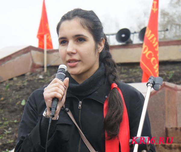 Комсомолка Карина, мать двоих детей : «Здесь много говорили про коррупцию и про власти. Я вчера прочитала известного психолога, который сказал: «Бездействие порождает страх и сомнение. Действие порождает силу». Власти не выгодно, чтобы мы действовали, им выгодно, чтобы мы сидели по домам и ничего не делали. Они делают всё для этого: вот вам кабельное телевидение 150 каналов – сидите дома и ничего не делайте, вот вам Интернет – только сидите дома и ничего не делайте. Я как мать двоих детей хочу изменить жизнь, чтобы она была как у наших матерей, у наших бабушек когда ты могла спокойно учиться. Когда можно было поступить в институт самой и учиться. При советской власти наши школы показывали самый лучший результат по миру. Сейчас мы стоим на самых последних местах по образованию и мне страшно у меня растут дети. Я хочу чтобы вы пришли домой и выключили телевизор потому, что там враньё. Помните, как было раньше? Назначали встречу, приходили в кафе и разговаривали. Сейчас мы сидим дома, с ближайшей соседкой мы переписываемся в социальных сетях. Здесь стоит молодёжь, значит будущее у нас есть. Хочется, чтобы всё больше и больше людей приходило на митинги. Хочется призывать чтобы мы действовали и изменили наш мир к лучшему. Я очень люблю свой город Казань, я никогда отсюда не уеду. Я хочу, чтобы говорили не о коррумпированной Республики Татарстан, а как о самой лучшей республике. Татарстан идёт вперёд, Татарстан борется с коррупцией! Татарстан идёт вперёд по образованию и чтобы говорили много-много приятных слов о нас и о «Коммунистах России».