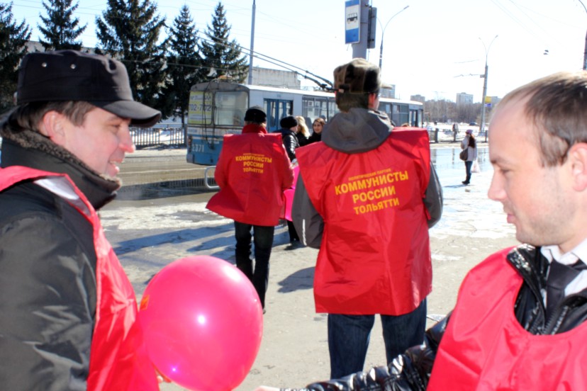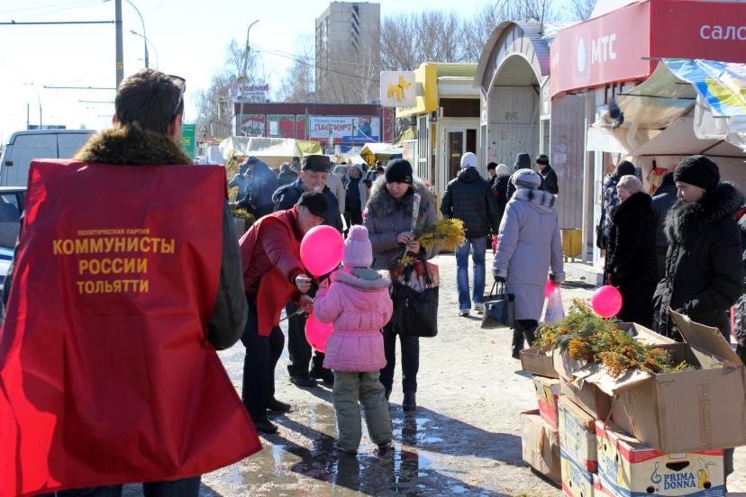 Мало настоящих праздников в нашей жизни, хочется чего-то хорошего, доброго.Тольяттинское городское отделение партии Коммунисты России озадачилось тем, как можно поздравить прекрасную половину с замечательным весенним праздником. Решено было провести серию флешмобов в наиболее популярных точках города. Как выглядели наши поздравления со стороны.Представьте: монотонный рынок, люди, в своей суете, бегут погружённые своими мыслями. Неожиданно из авто выходят доброжелательные люди в красных накидках, в их руках праздничные цветы и шары, они останавливаются у суетливых виновниц сегодняшнего праздника и дарят подарки. Получившие поздравление и подарок расплываются в улыбке. Раздарив, свои подарки комросы быстро садятся в автомобили и исчезают, оставляя радость и хорошее настроение.Подобным образом, прошли наши поздравления во всех районах города, в самых людных местах. Дорогие наши женщины, поздравляем вас с Праздником 8 Марта!