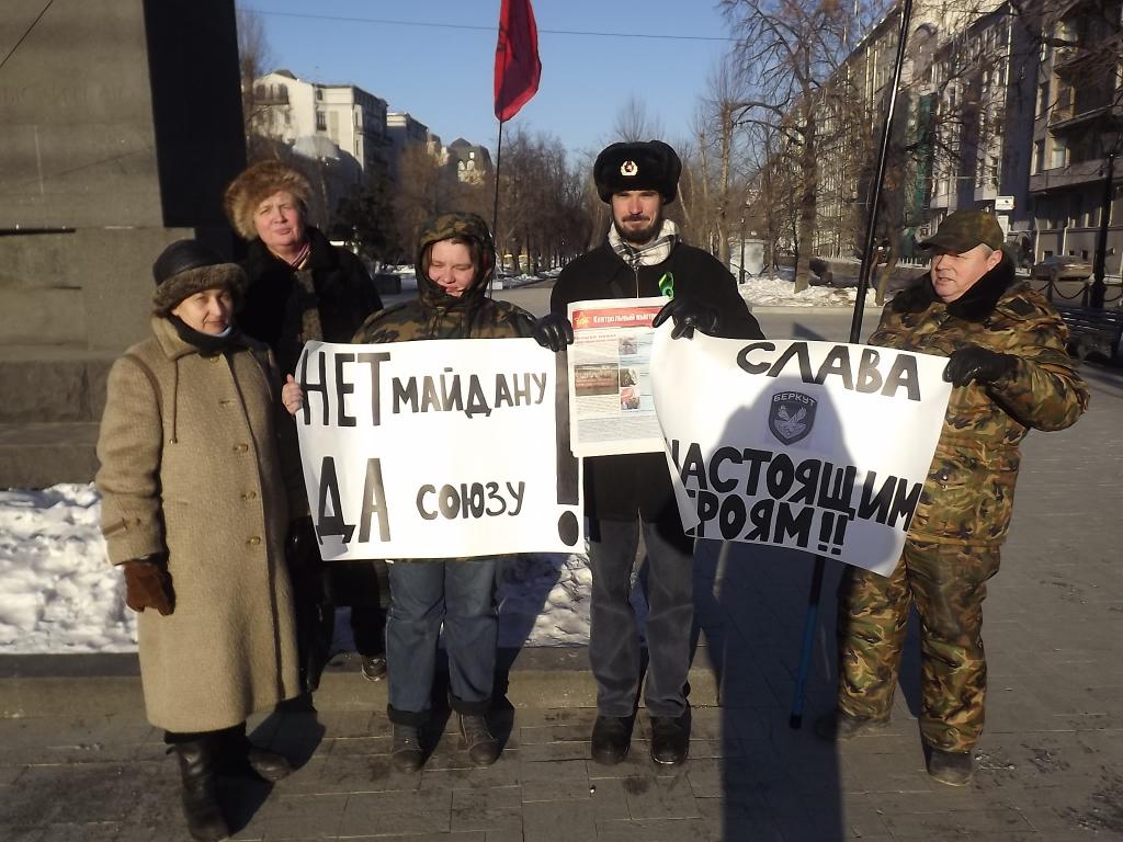 31 января члены политической партии КОММУНИСТЫ РОССИИ на территории Саратова провели рейд одиночных пикетов в поддержку трудящихся Украины в борьбе за союз с Россией. Коммунисты стояли с лозунгами: «Майдана два – народ один» «Свободной Западной Украине – свободные от газа российские трубы» «Тело Кличко на Украине, а совесть в Германии» «Братья славяне! Не делайте из Украины помойную яму Европы» «Футбольные хулиганы – ударная сила разбушевавшихся украинских националистов» «Долой Бандеру! Да здравствует Ленин!» «Сожгли Союз, сегодня жгут Россию»