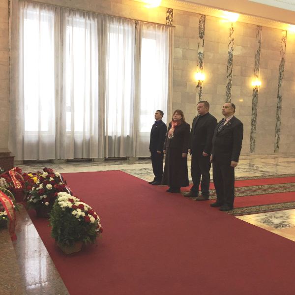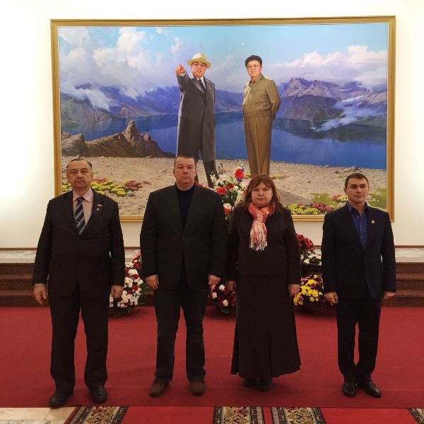Позднее делегация ЦК КР под руководством Заместителя Председателя ЦК КР Я.С. Сидорова возложила цветы к портрету Великих руководителей КНДР в знак уважения к историческимм лидерам этой дружественной страны.
