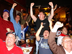 Победу национальной сборной России по хоккею коллектив Постоянного представительства России при НАТО встретил в одном из спорт-баров Брюсселя.