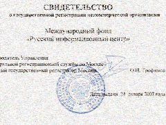 5 марта учредители международного фонда "Русский информационный центр" (РИЦ) получили свидетельство о государственной регистрации некоммерческой организации, подписанное 24 января 2007 года главным государственным регистратором Москвы. Комментируя это событие, депутат Госдумы, член Президиума ЦК "Родины.КРО" Андрей Савельев сказал, что пока рано делать какие-либо заявления: во-первых, процесс регистрации еще не завершен, а во-вторых, от имени РИЦ пока не ведется официальной работы, хотя каждый из тех, кто вошел в РИЦ, многое уже сделал на нашем направлении. "Самые предварительные итоги можно будет подводить только через полгода, когда дадут результаты реальные дела. Формальные декларации мало чего стоят", - заявил Савельев.