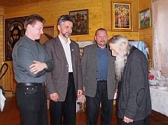 Паломники пустились в путь на "семерке", Андрей Савельев прокомментировал это так: "Промыслительно получилось, что мы едем на отечественном автомобиле. Стыдно было бы ехать в такое святое место на "Мерседесе": наши предки на повозках добирались, а то и пешочком!". Путников ждал келейник отца Илия, иеродиакон Рафаил, он и провел гостей к старцу. Вот как описывает встречу Андрей Полынский: