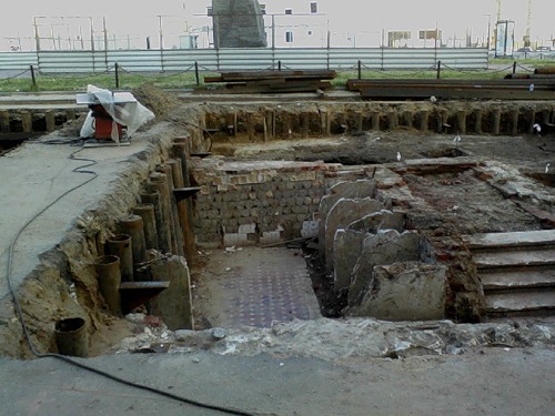 Вчера, проходя мимо, мы с товарищами обнаружили, что археологи откопали… общественный туалет, построенный, судя по всему, в эпоху позднего советизма. Все на месте – кафель полов, стен, перегородки кабинок. Ждем дальнейших бесценных находок.