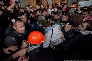 Мне очень страшно получить дубиной по голове. Ну, во-первых, это больно. Во вторых, это неожиданно может произойти, как я понимаю. Ведь я не в курсе всех запрещенных акций, которые будут где-то проходить, а вдруг я как раз мимо пойду по магазинам в поисках гречки... И вот, что я придумала: может быть, мне ходить все время в каске, а? Вот как здесь: