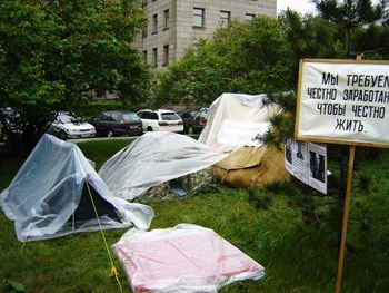 И вот сегодня бирюсинцы приехали в Иркутск. Депутаты от КПРФ пытаются достучаться до губернатора, а национал-большевики круглосуточно контролируют порядок в палаточном городке. Засуетились журналисты. Голодающие не требуют ничего сверхъестественного – всего лишь дать им возможность честно работать. А НБП, как известно, за тех, кто работает!