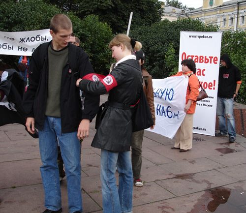 Актив московского отделения НБП принял участие в пикете против выселения горожан из своих домов. Мероприятие прошло в центре Москвы около станции метро Кропоткинская. Организатором выступил Временный городской комитет.