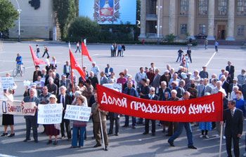 Собралось человек 100. Выступающие говорили о предательстве интересов России правящей верхушкой во главе с "всенародно-избранным" президентом, о проамериканском курсе администрации Путина, а так же коснулись гнусной политики городских властей.