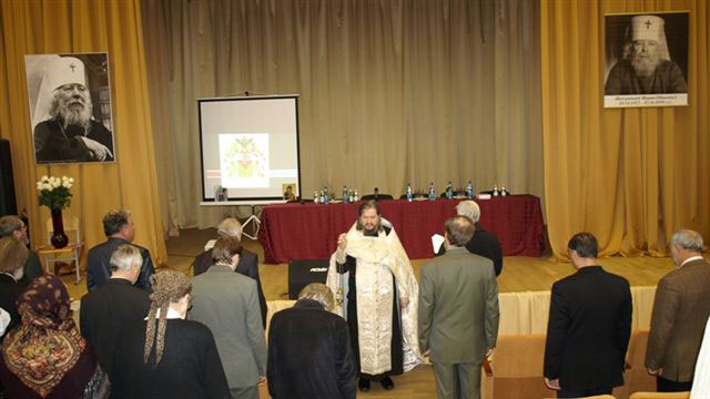 Перед началом конференции игуменом Кириллом (Сахаровым) была отслужена заупокойная лития, а также оглашено поступившее в адрес конференции приветствие от вдовы племянника Николая Второго Ольги Николаевны Куликовской-Романовой, президента благотворительного фонда имени Его Императорского Высочества Великой Княгини Ольги Александровны.